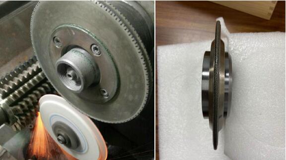 齒輪行業(yè)用的金剛石滾輪修整器,可簡稱齒輪金剛石滾輪,磨齒機(jī)金剛石修整滾輪,廣泛用于汽車、工程機(jī)械、輪船、風(fēng)力發(fā)電、機(jī)械傳動等齒輪中,如雙片單錐面、單片雙錐面、齒輪齒頂、全齒面等。其中HNT金剛石滾輪根據(jù)加工工藝要求,調(diào)整金剛石的排布方式(有序置砂和漫撒密置),滿足滾輪的抗磨損性能和工件加工的表面質(zhì)量要求。