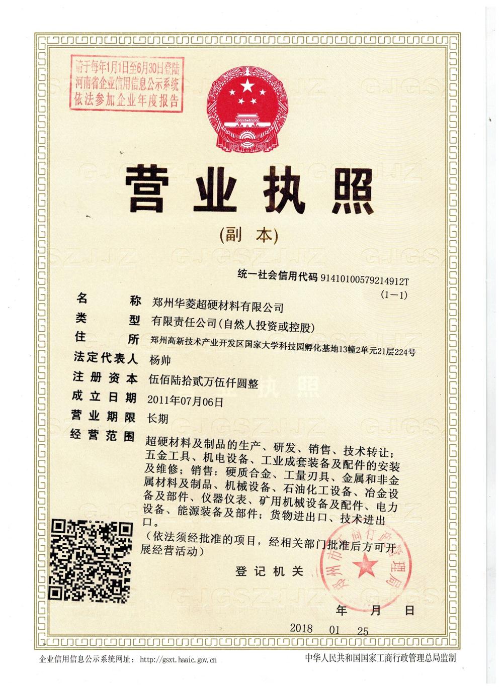 鄭州華菱超硬材料有限公司營業(yè)執(zhí)照