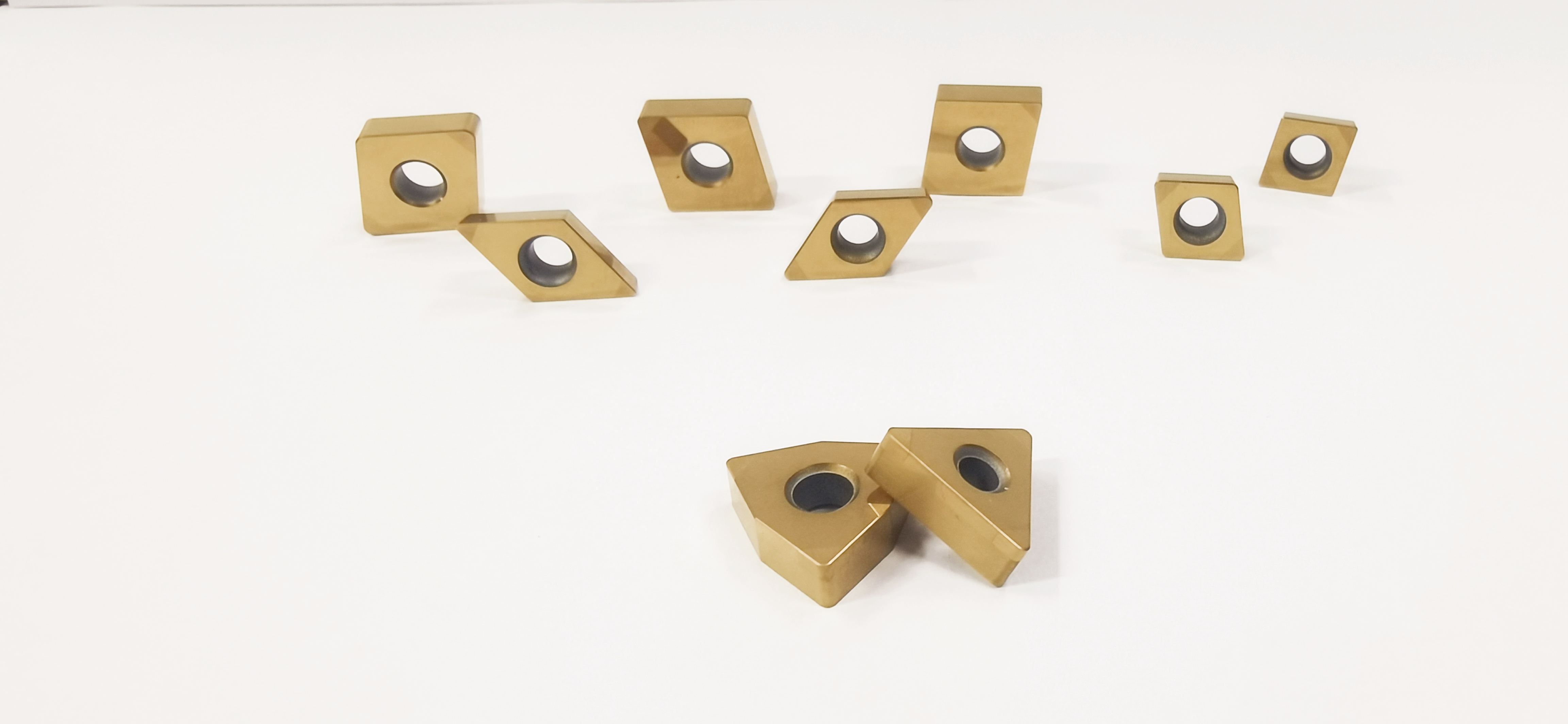 華菱目前可提供五種涂層供大家選擇,它們分別是C20(金黃色)、C25(淺灰色)、C65(古銅色)、C03(重古銅色)和C75(灰褐色)。不同的顏色代表不同的性能,所適合的工況也不同,其中C20(金黃色)是一個材質性能適中的選擇,連續加工和斷續加工均可使用;C65(古銅色)和C03(重古銅色)適合超高速加工和連續加工,可以延長刀具的壽命;C75(灰褐色)適合中低速狀態下的切削和強斷續加工工況。