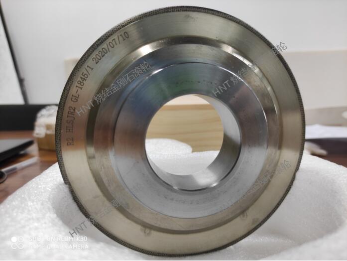 燒結HNT金剛石滾輪修整器:按圖紙要求加工一模具,之后采用人工植入方式,將大顆粒金剛石按一定的密度有序的鑲在模具內,之后采用燒結爐及粉末冶金技術燒結,之后去掉模具,以金剛石型面為基準,加工孔和端面基準,之后再磨床上修整砂輪,計算出合適的修整余量,在專業的磨床上經過多次反復的修磨和檢測,直至符合成品圖紙要求。