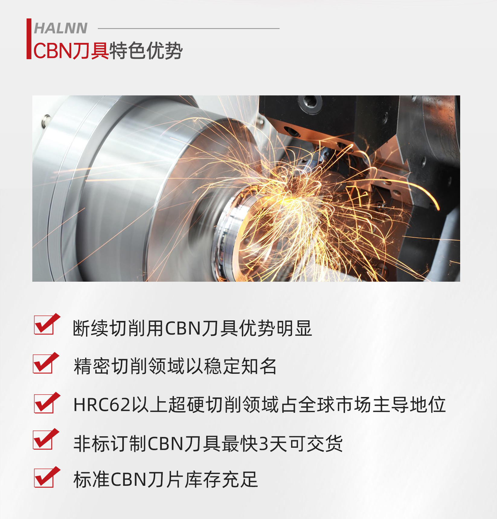 華菱超硬提供了多種硬車削CBN刀具規格,包括CNGA系列、VNGA系列、TCGW系列等,以滿足不同客戶的需求。此外,公司還提供定制刀片服務,包括全貼面刀片、加長刃刀片、斷屑槽刀片和涂層刀片等,以適應各種復雜的加工環境。